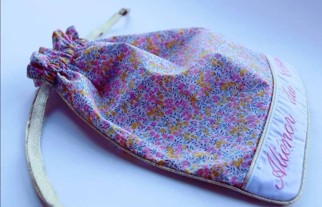 * modèle Callisté ( la broderie se présente sur la partie supérieure du pochon, directement brodée sur le tissu principal).