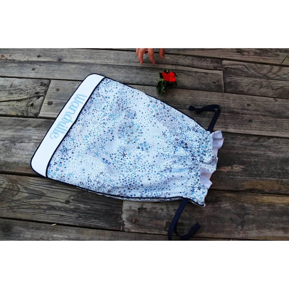 Ici, il s'agit du grand pochon. Sa taille est idéale pour y glisser les sous vêtements propres ou sales lors des vacances, ou le change à l'école!